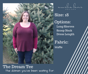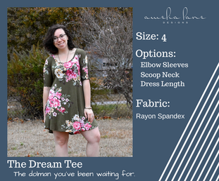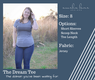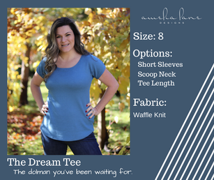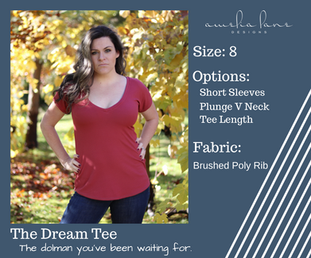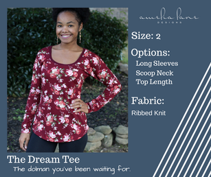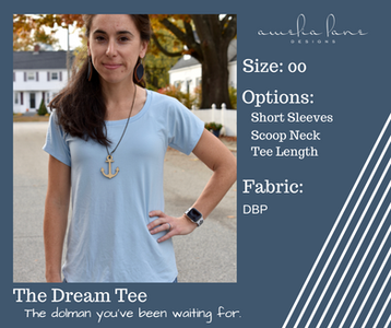 The Dream Tee is designed to be made with your favorite knit fabrics - Double or Single Brushed Polyester (DBP/SBP), French Terry, Rayon Spandex or Jersey - anything with at least 20% stretch and good recovery. The dolman sleeves are easy and comfortable no matter the season.